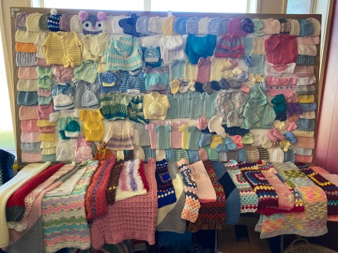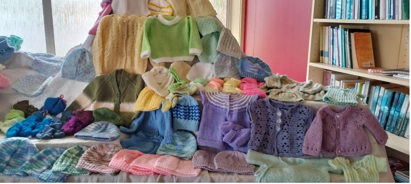 Every year we donate hundreds of knitted items for babies and adults to Waitakere Hospital, where they are freely distributed to all who need them. We also pack and donate small toiletry kits which are given to patients who were unable to bring those items from home.